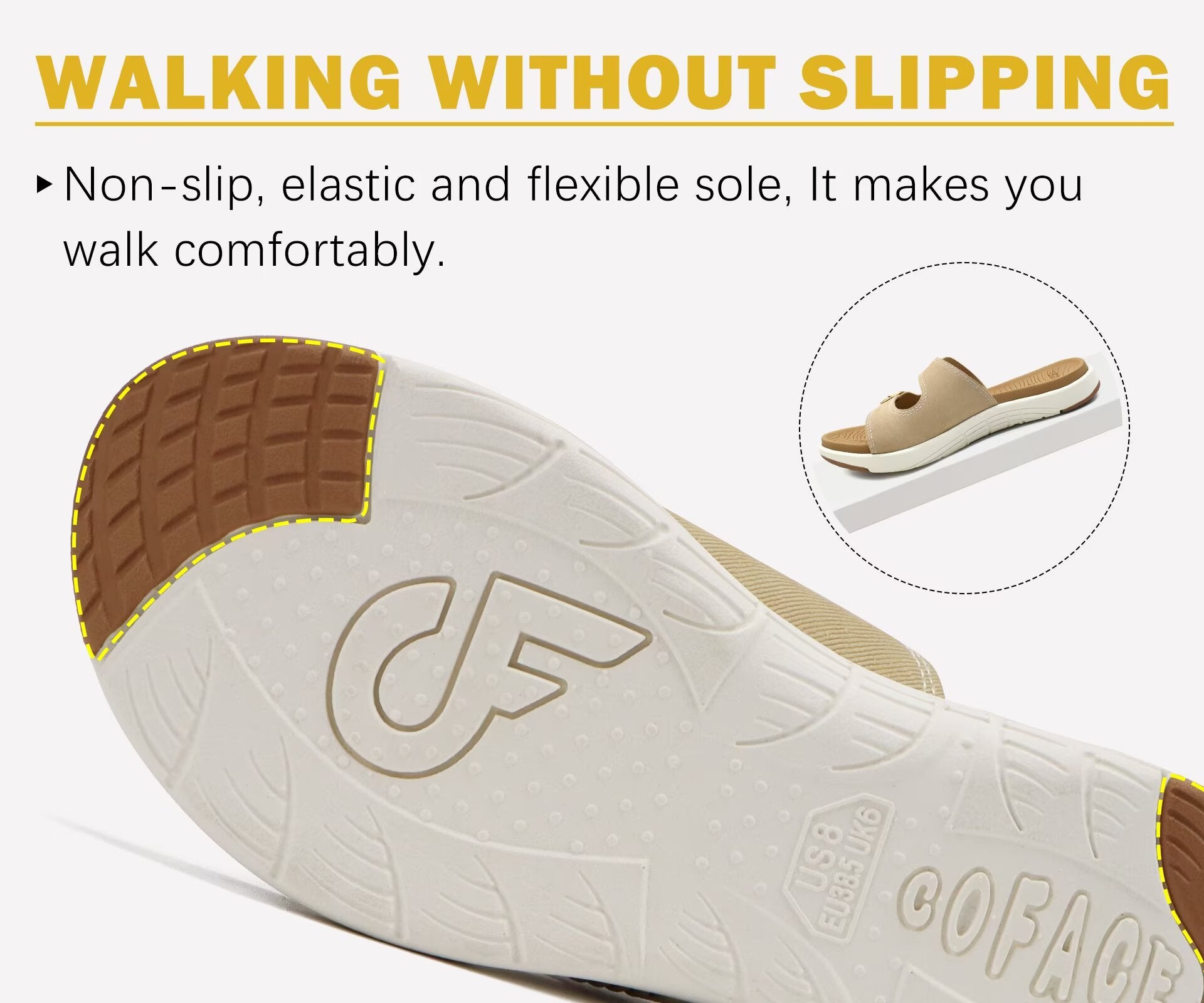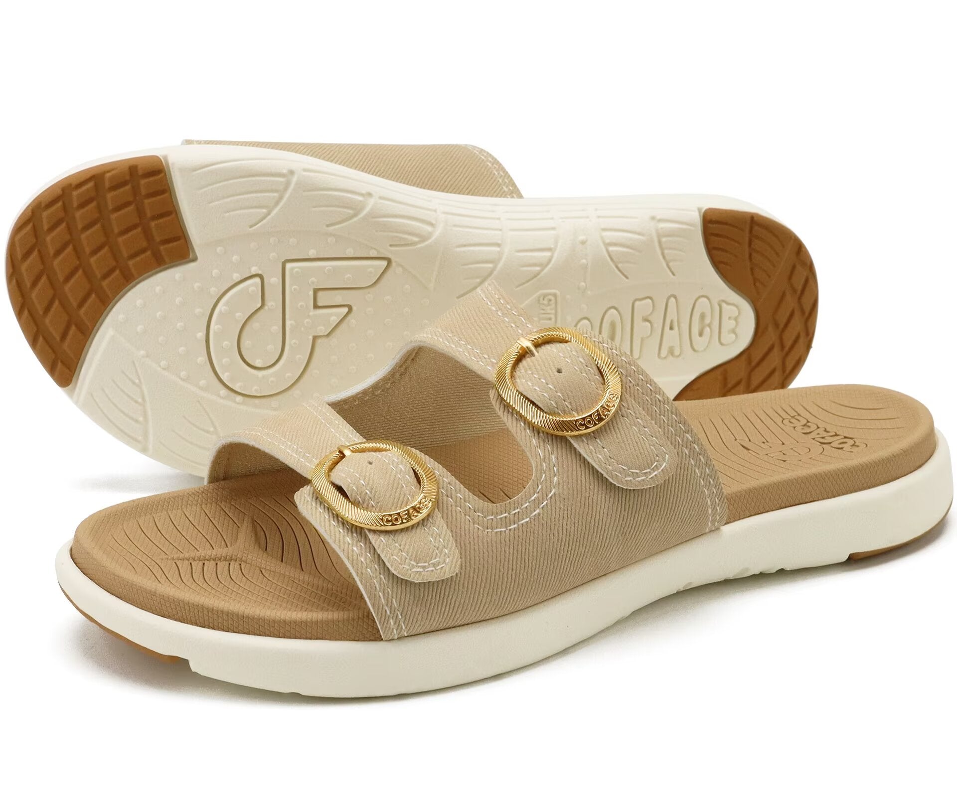 COFACE Womens Orthotic Slides Comfort Plantar Fasciitis Arch Support Slip on Flat Sandals Ladies Soft Cushion Fashion Yoga Mat Slippers With Adjustable Straps